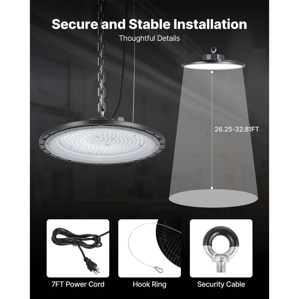 Confezione da 10 Lampade LED UFO 5000K 200W Super Luminose 30000LM IP65 Impermeabili per Illuminazione Industriale di Magazzini e Negozi 100-277V Ampio Voltaggio