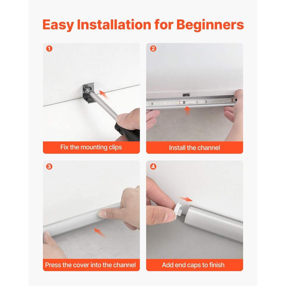 Confezione da 10 Profili LED in Alluminio a V da 2M (6.6 Ft) con Copertura Opaca e Tappi Terminali, Clip di Montaggio per Pannelli LED Flessibili