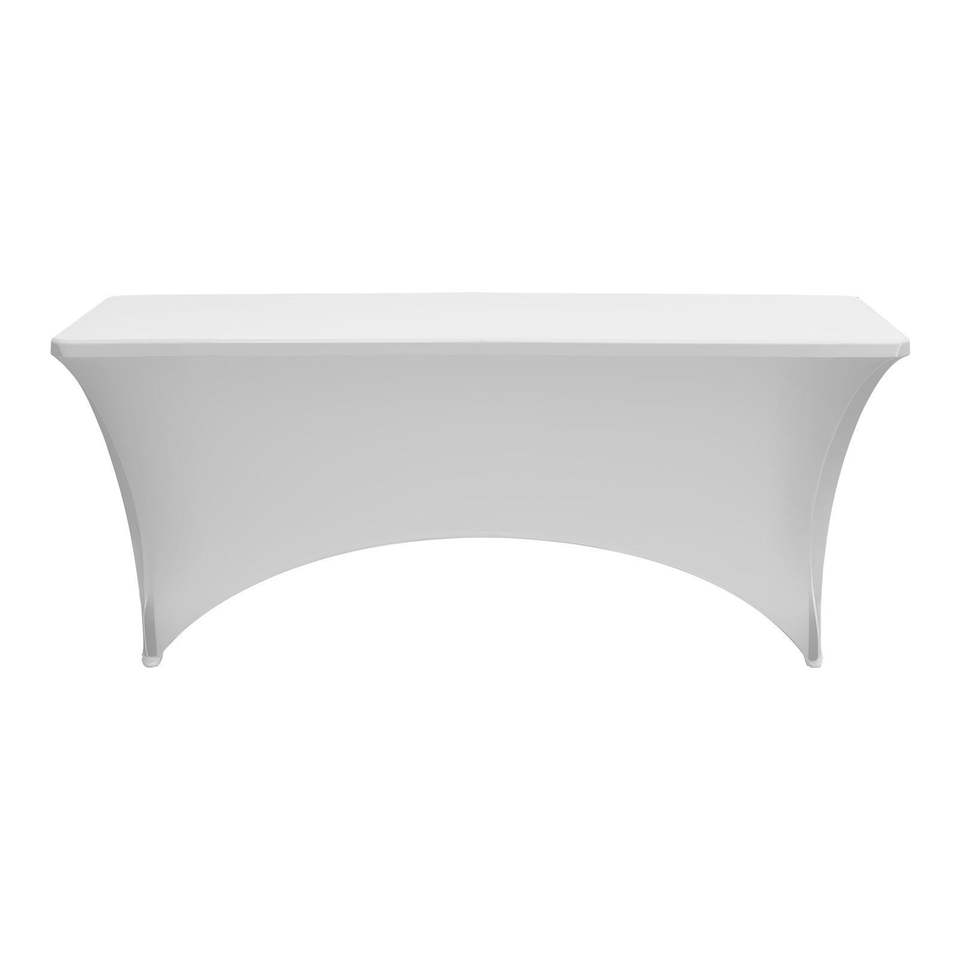 Confezione da 10 Copritavolo Rettangolare in Spandex Bianco da 6 Piedi, Lavabile, Antirughe, Elasticizzato per Eventi e Cocktail