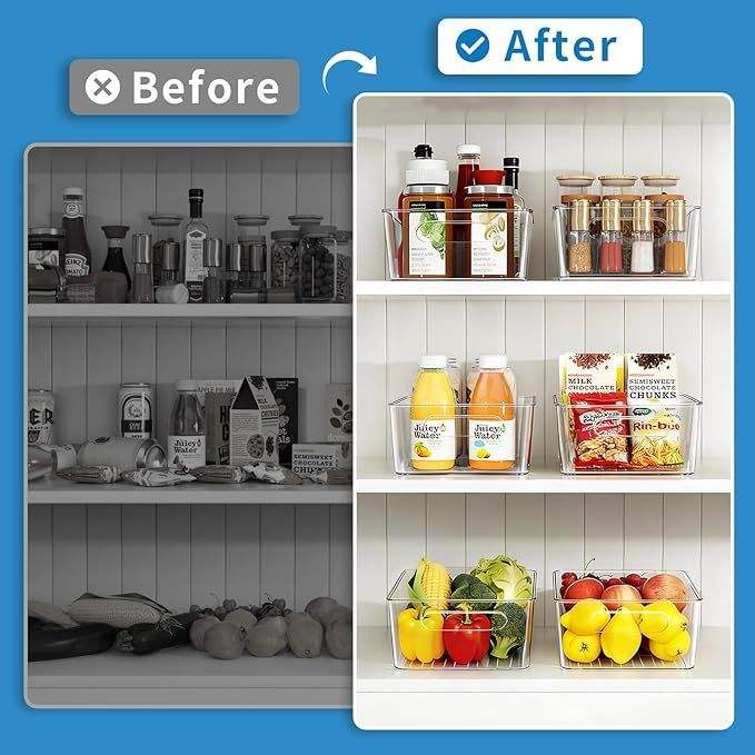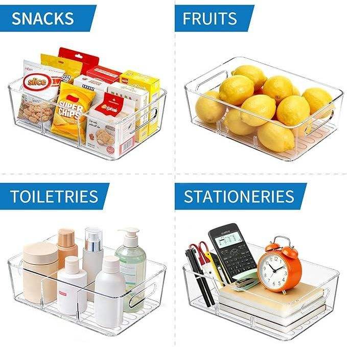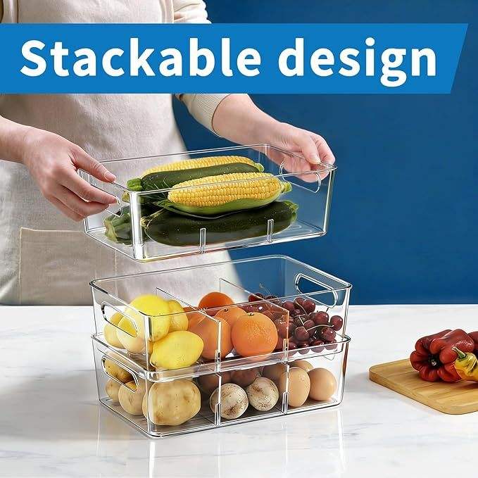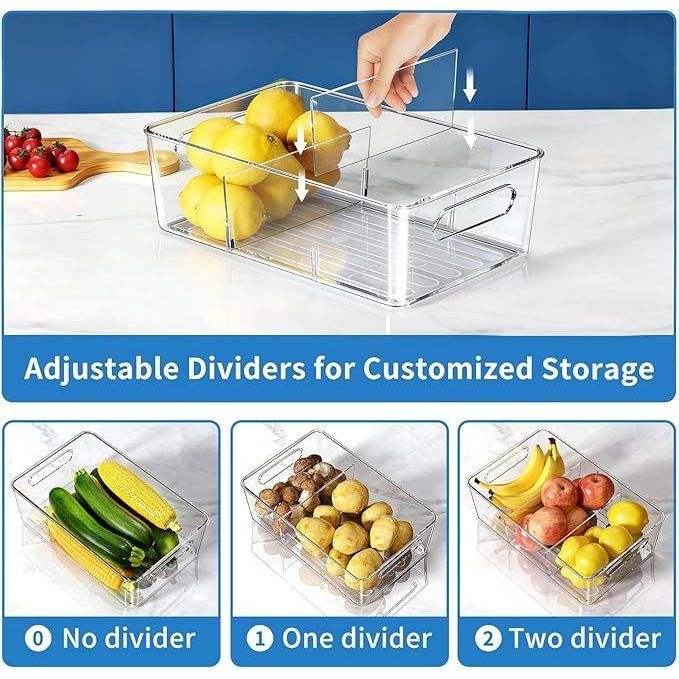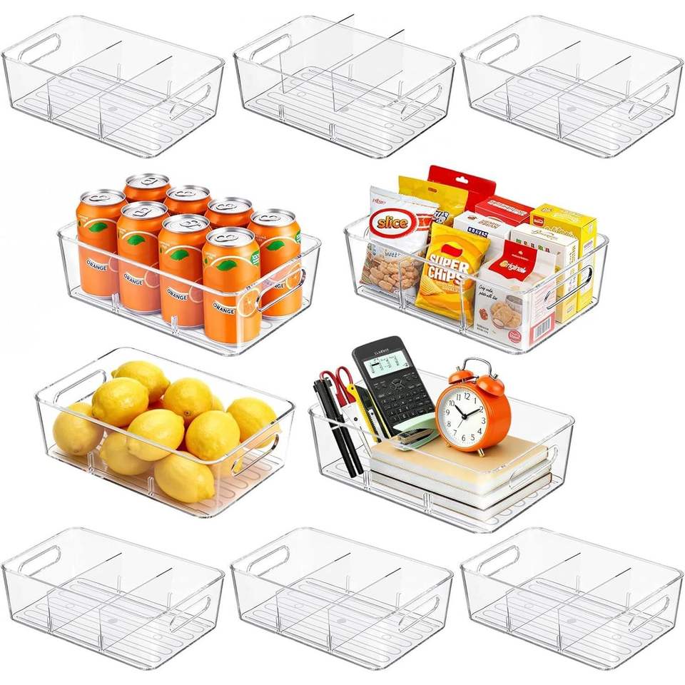 Set di 10 Organizzatori Trasparenti in Plastica per Dispensa con 2 Divisori, Facile Organizzazione per Cucina e Frigorifero, Prodotto in Acrilico