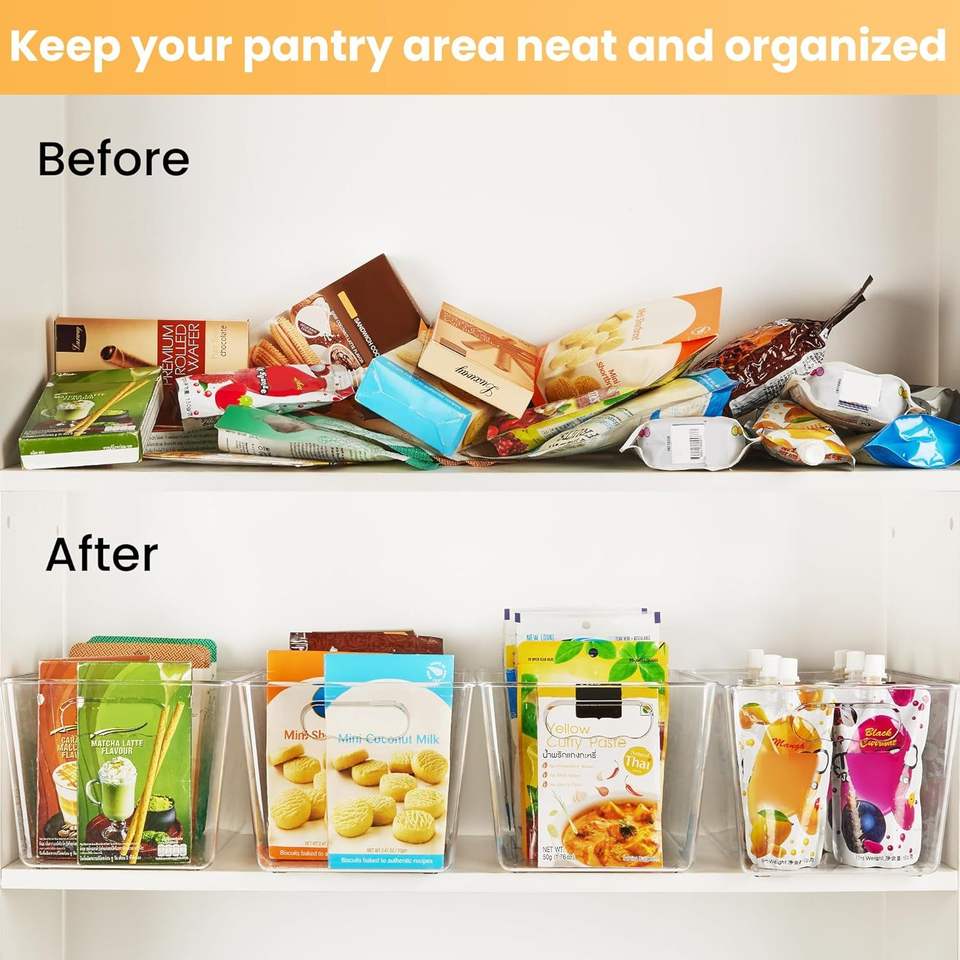 Set di 10 Contenitori in Plastica Trasparente con Manici per Cucina, Freezer e Dispensa - Organizza Efficientemente la Conservazione degli Alimenti