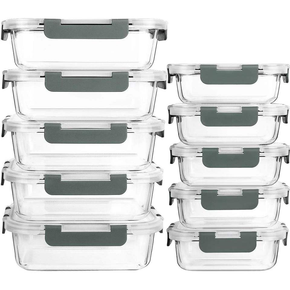Set di 10 Contenitori in Vetro per Preparazione Pasti con Coperchi a Chiusura Ermetica, Contenitori per Alimenti e Pranzo, Adatti al Microonde