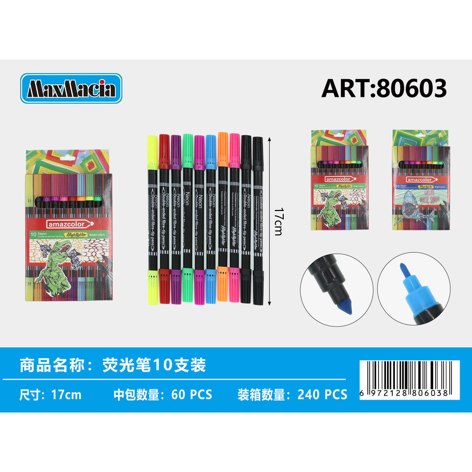 10 Pack Mini Neon Fluorescent Highlighter Marker Dual Tip with Oblique Brush for Office and School Supplies