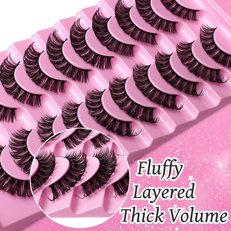 10 Pairs 20mm Cat Eye Wispy D Curl Volume Full Strip Faux Mink False Eyelashes Lashes Pestanas