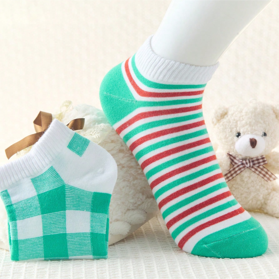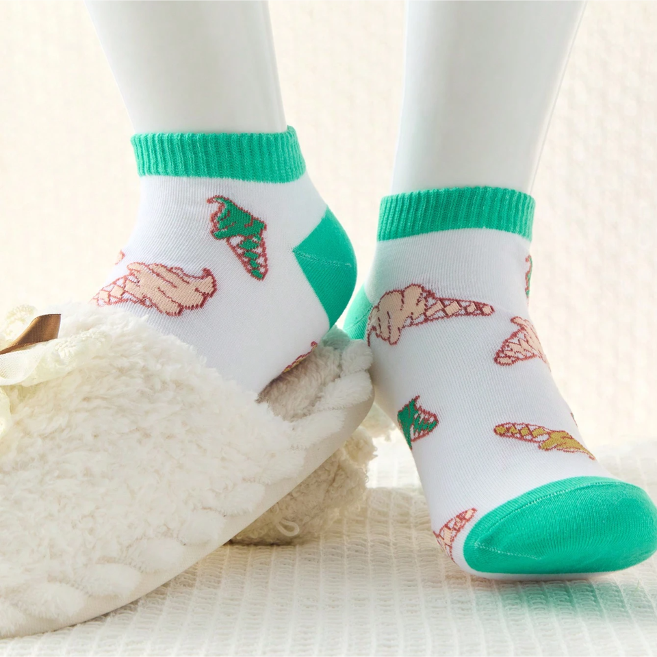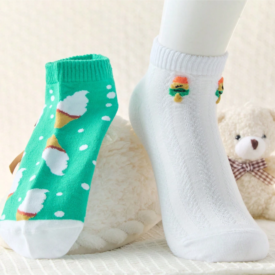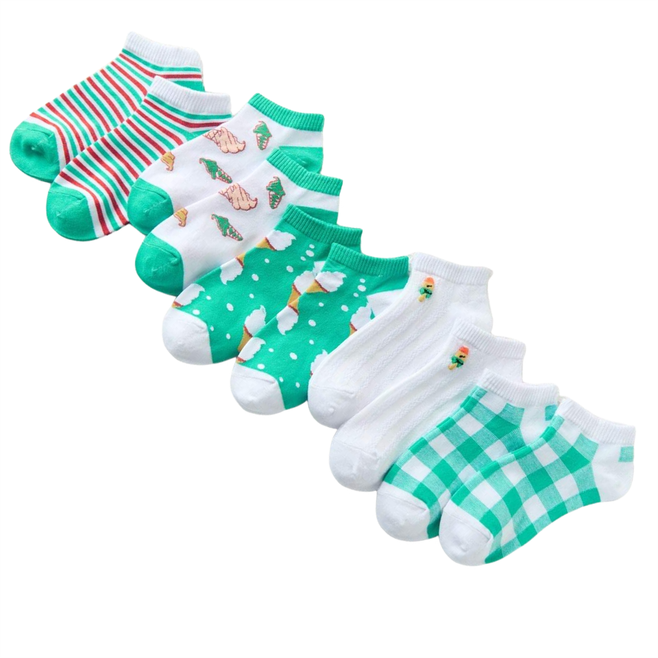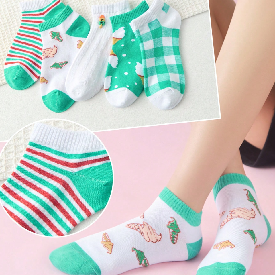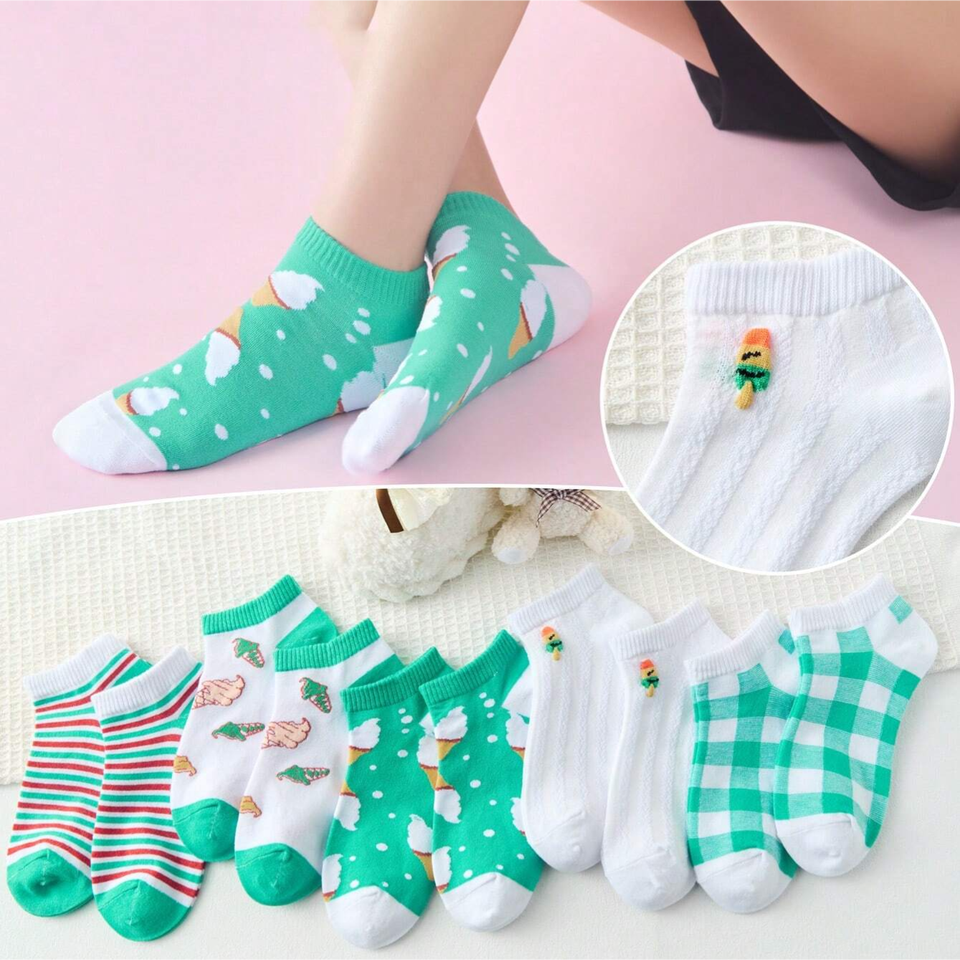 10 Pairs Women's Ankle Socks with Ice Cream Patterns, Ladies' Short Socks in Various Colors and Stripes