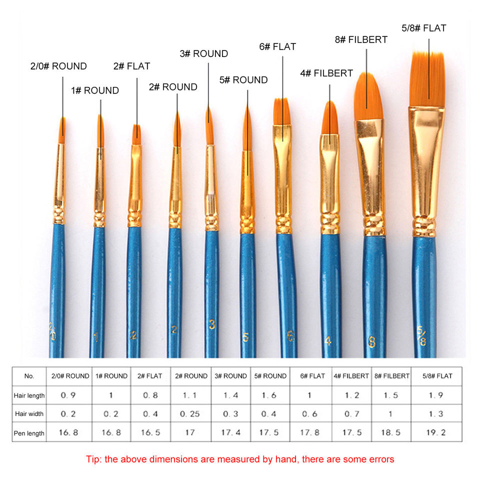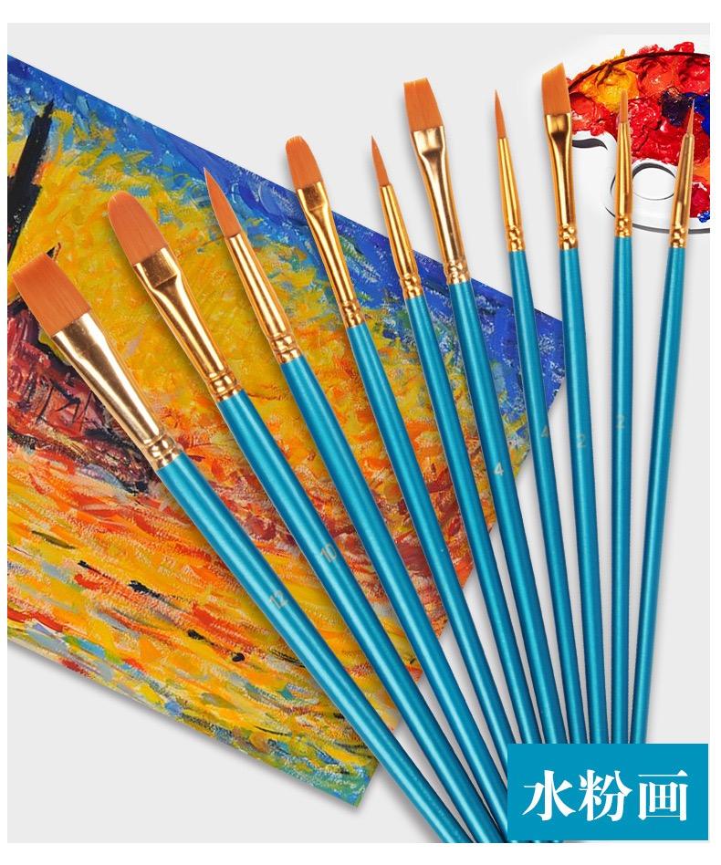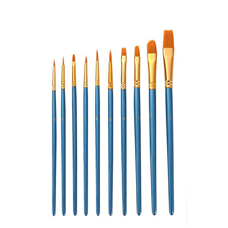10 Pcs Fine Tip Flat Bulk Artist Blue Paint Brushes Set Oil Watercolour Painting Acrylic Art Paintbrush Kids Pinceles Acuarela