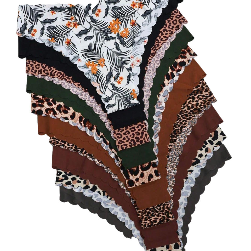 10 Pcs/Lot Women's Seamless Floral Printed Briefs Wave Trim Waistband Leg Openings Invisible Daily Underwear