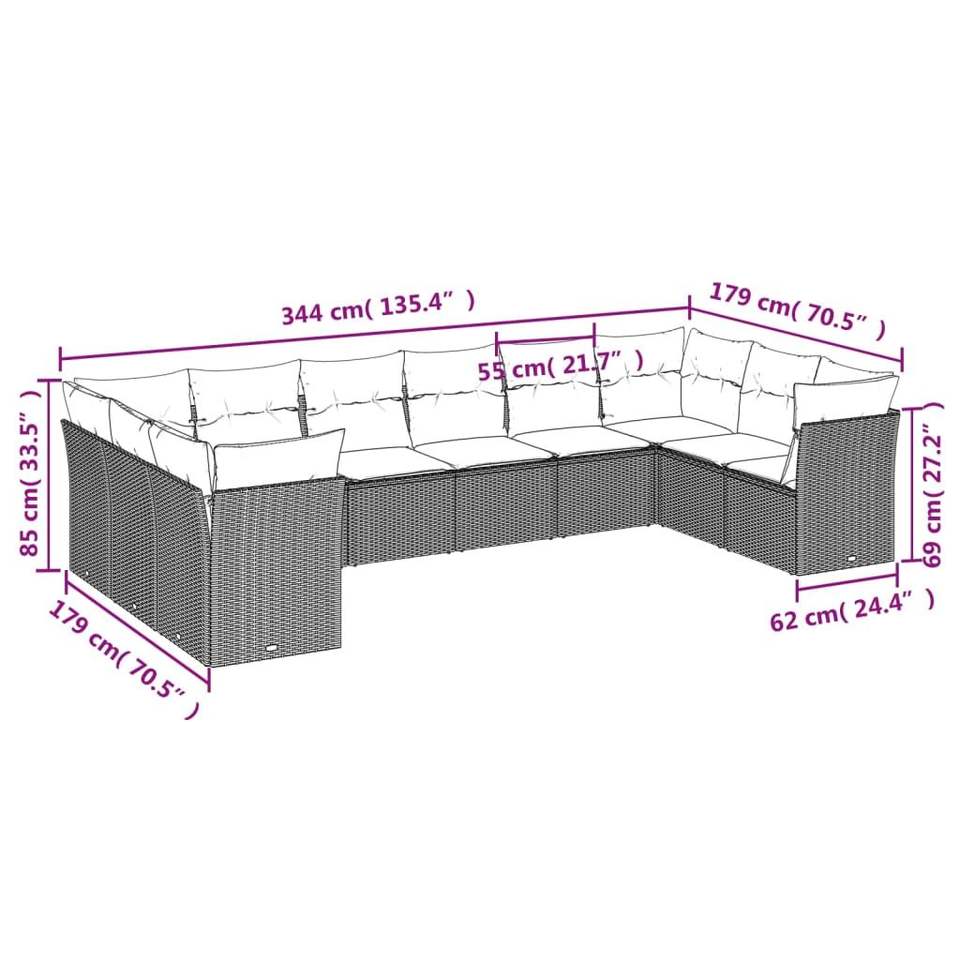 Set divano da 10 pezzi in Poly Rattan nero con cuscini elegante collezione di mobili da esterno