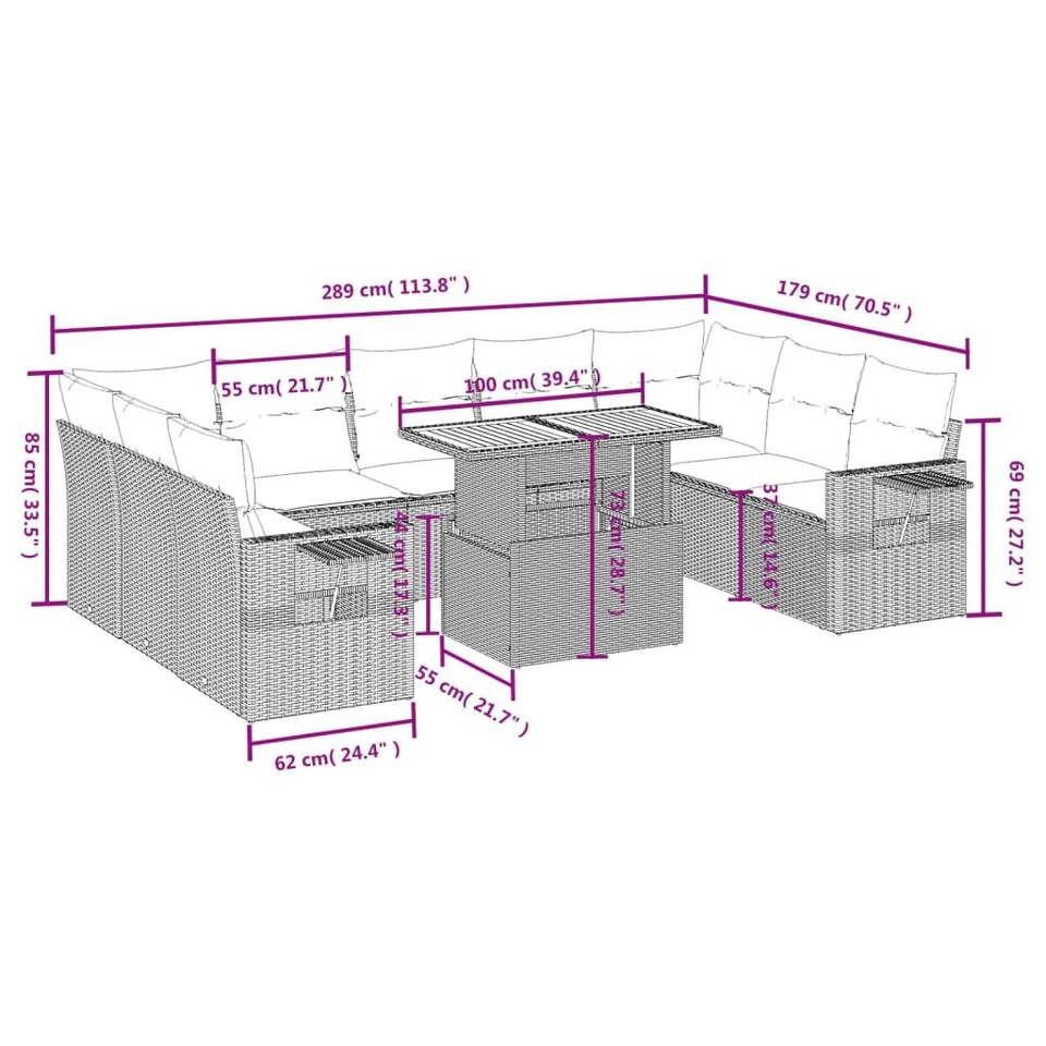 Set divano da 10 pezzi in Poly Rattan nero con cuscini elegante collezione di mobili da esterno