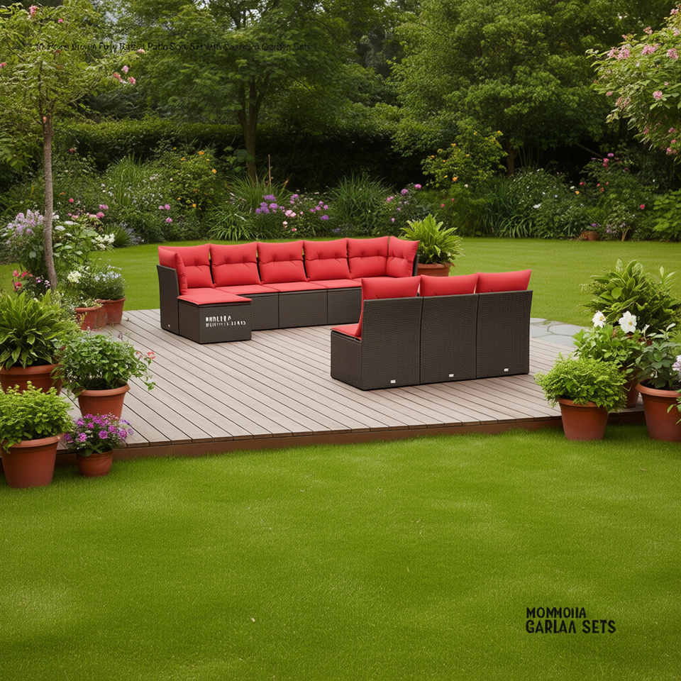 MOMMOHA Set Divano da Esterno 10 Pezzi in Polyrattan Marrone con Cuscini, Arredamento da Giardino, Sedute per Esterni