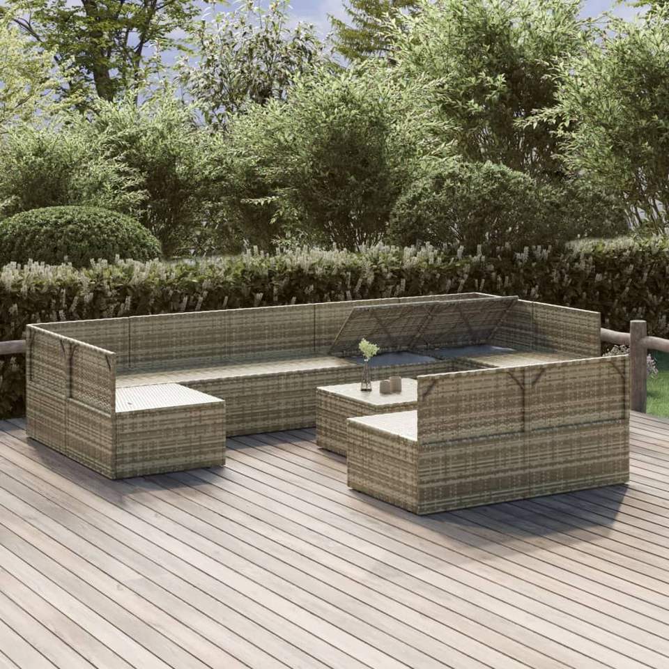Set da 10 Set da giardino in Poly Rattan grigio con cuscini da giardino