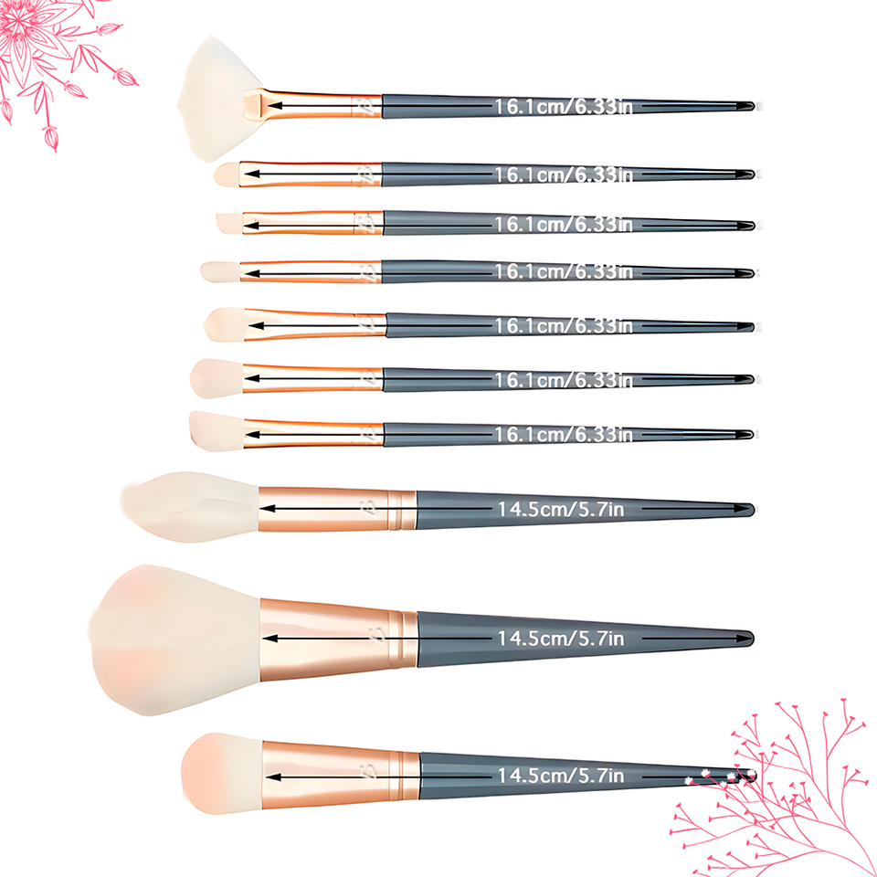 10 Piece Makeup Brush Set with Case - Soft and Full for a Professional Finish