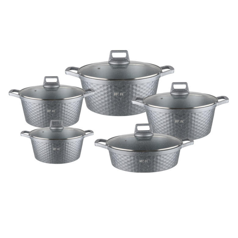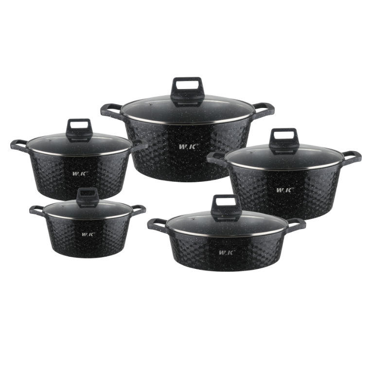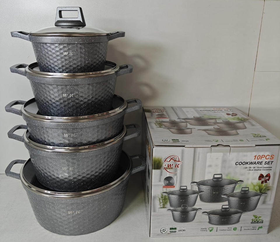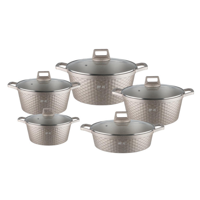 Set di 10 Pentole Antiaderenti in Alluminio con Coperchi in Vetro, Design Moderno e Semplice, Base Multistrato, Essenziali per la Cucina di Casa