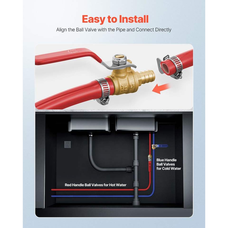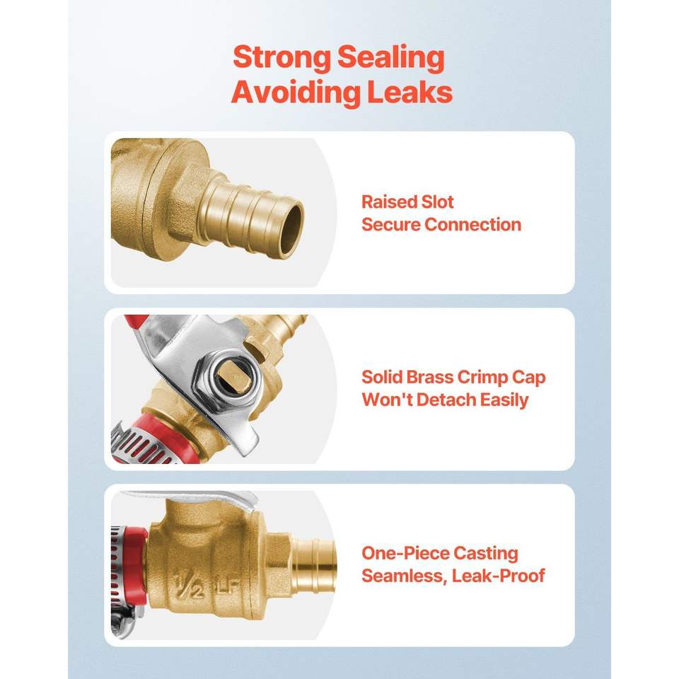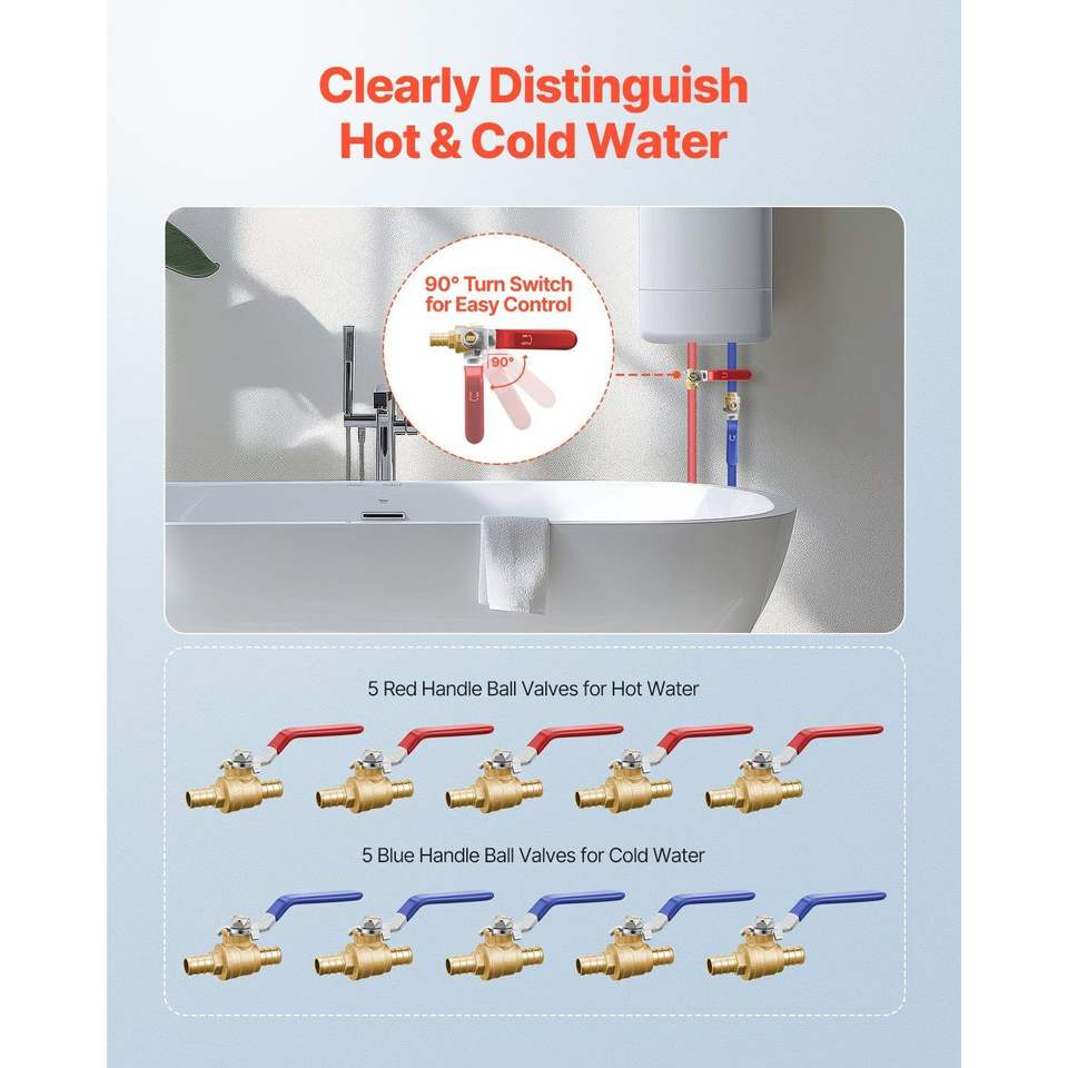 Set di 10 Valvole a Sfera in Ottone PEX da 1/2 Pollice, Completamente Apribili, per Acqua Calda (Rosso) e Fredda (Blu), a Quarto di Giro