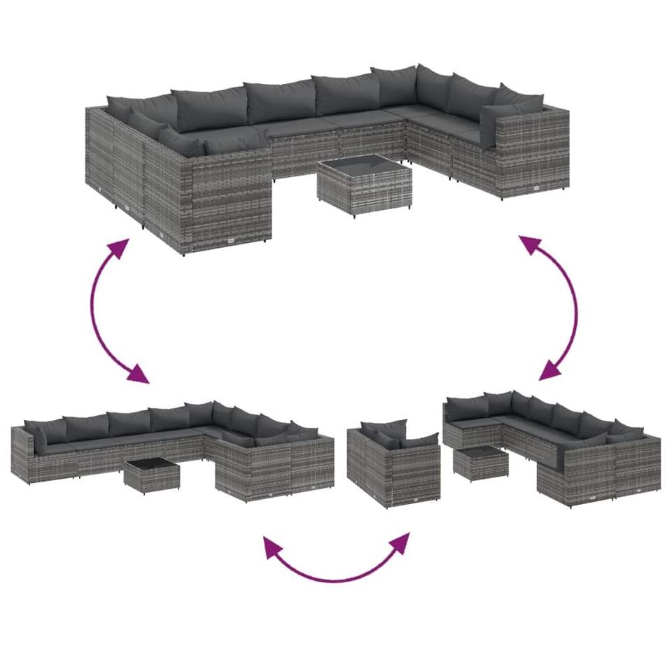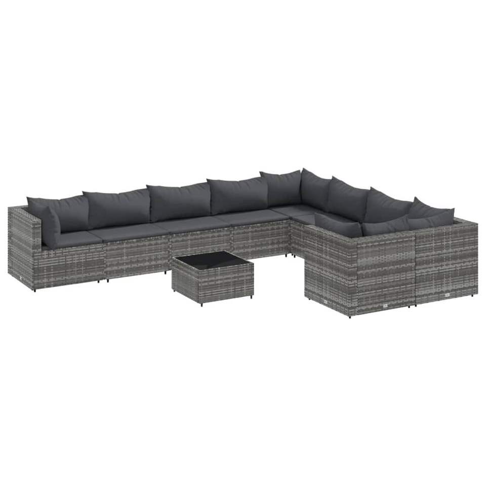 Set Divano da Esterno in Rattan PE Grigio con Struttura in Acciaio Verniciato a Polvere, 10 Pezzi, Stile Contemporaneo, Resistente alle Intemperie
