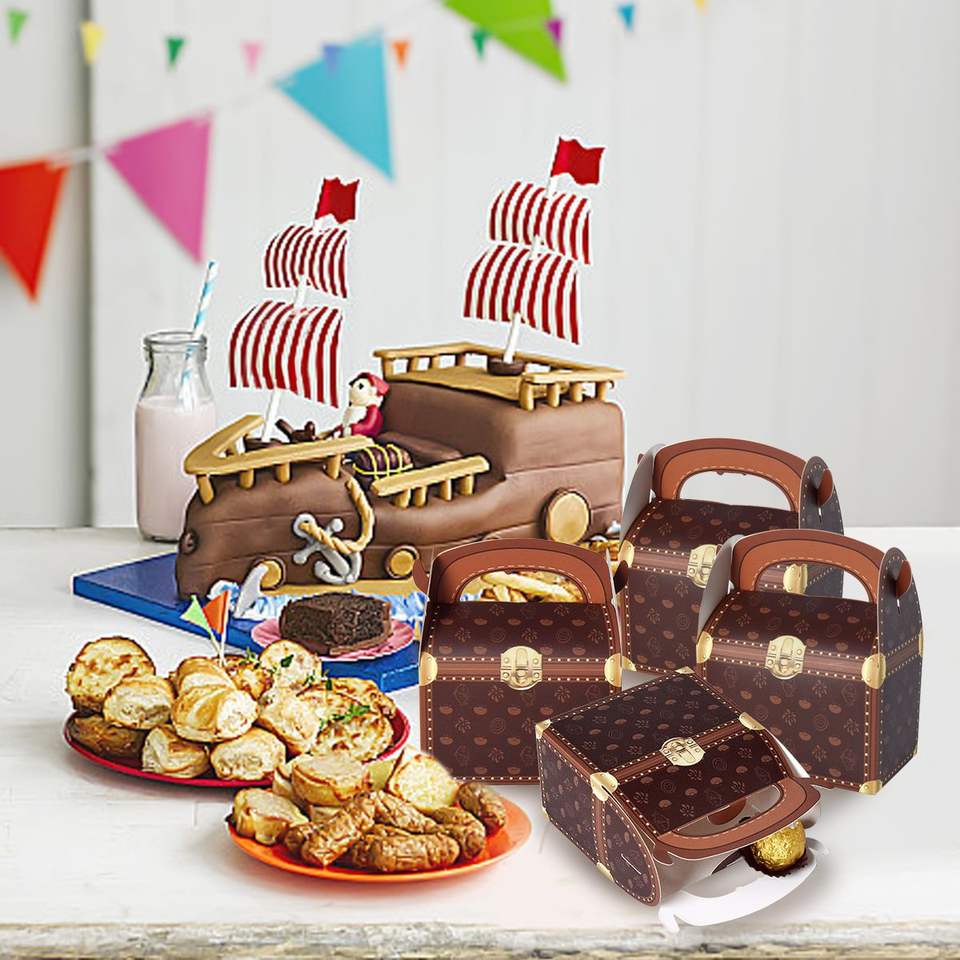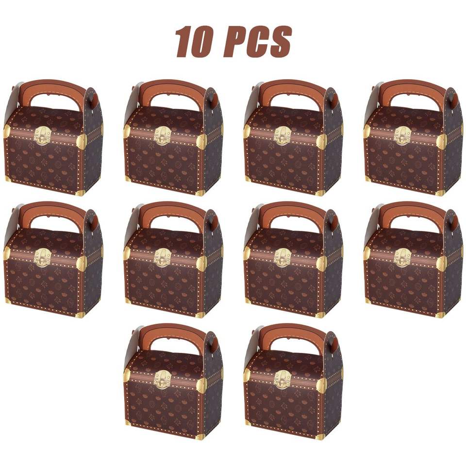 Set di 10 Scatole Regalo a Forma di Baule del Tesoro Pirata, Confezioni per Caramelle e Regali con 2 Stili di Manici, Scatole per Dolcetti a Tema Pirata