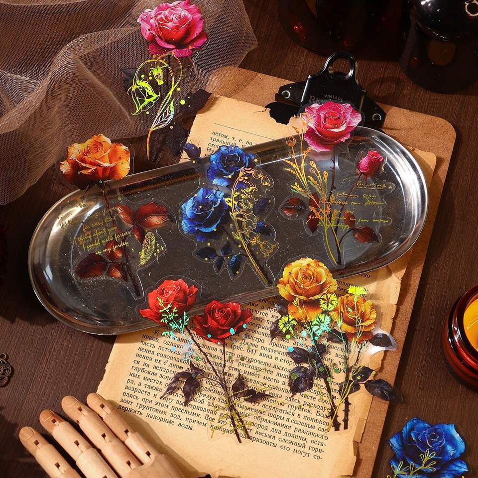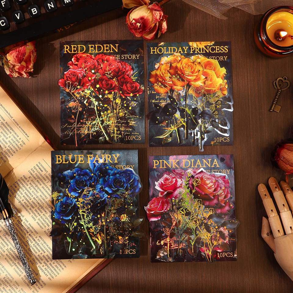 10 Pieces/pack Rose Legend Series Retro Gothic Style Hot Stamping PET Hand Tent Stickers Material Collage DIY