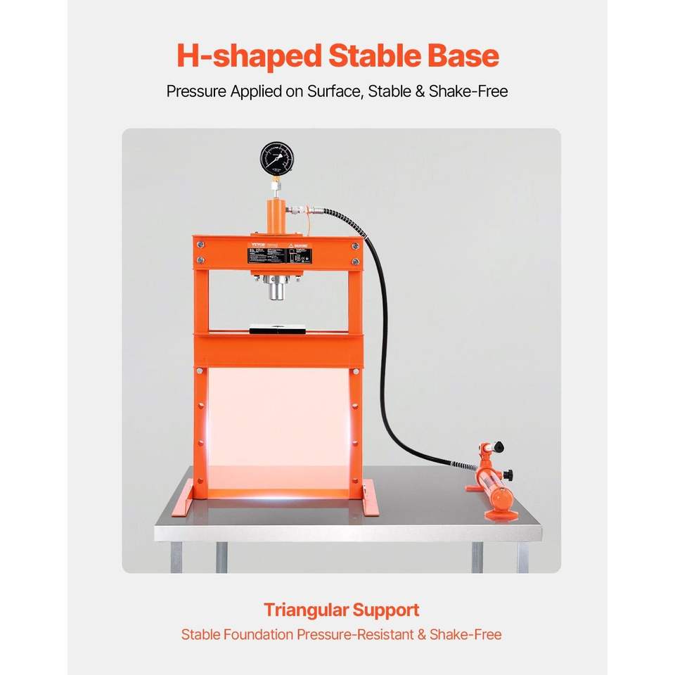 Pressa Idraulica a Telaio H da 10 Tonnellate con Piastra di Pressione Regolabile, Base a H Stabile per Garage