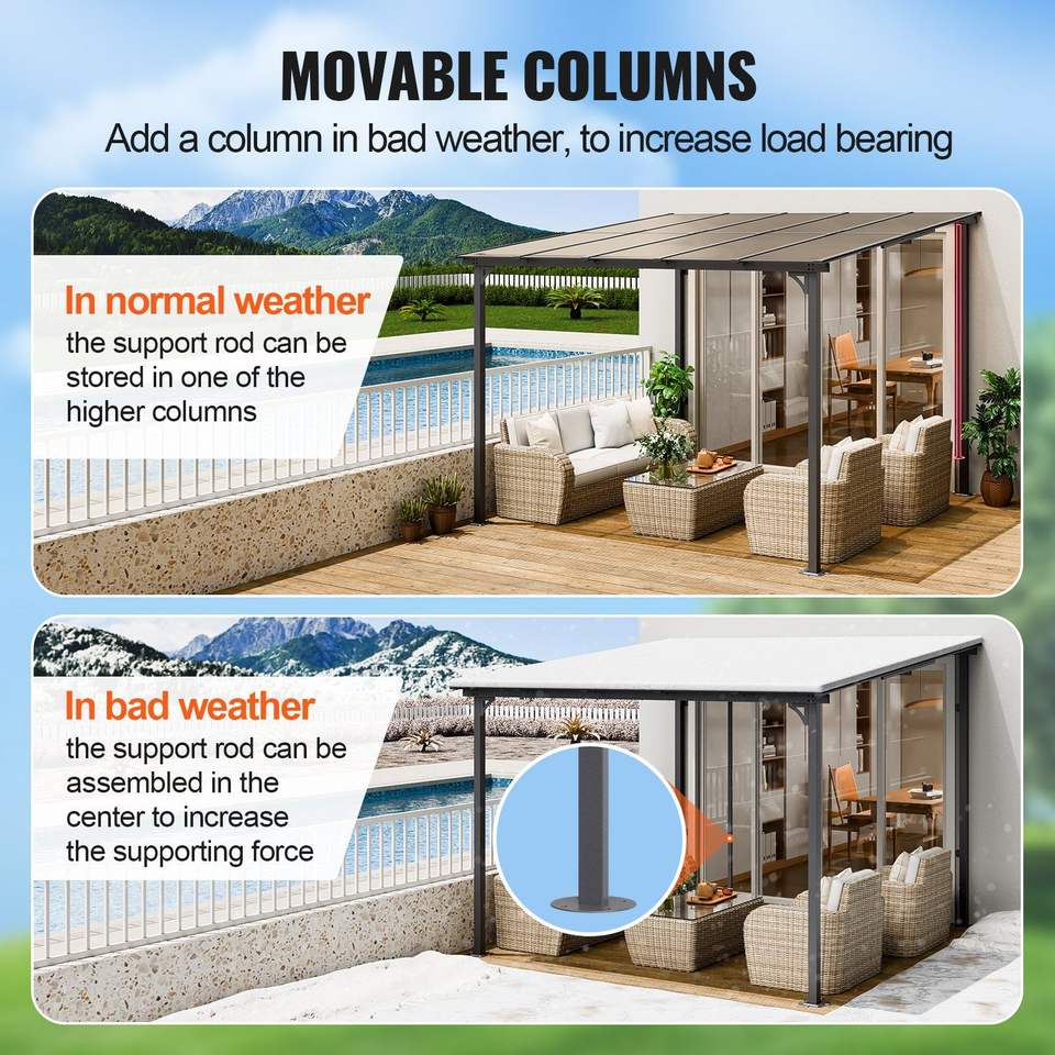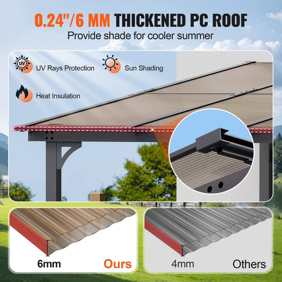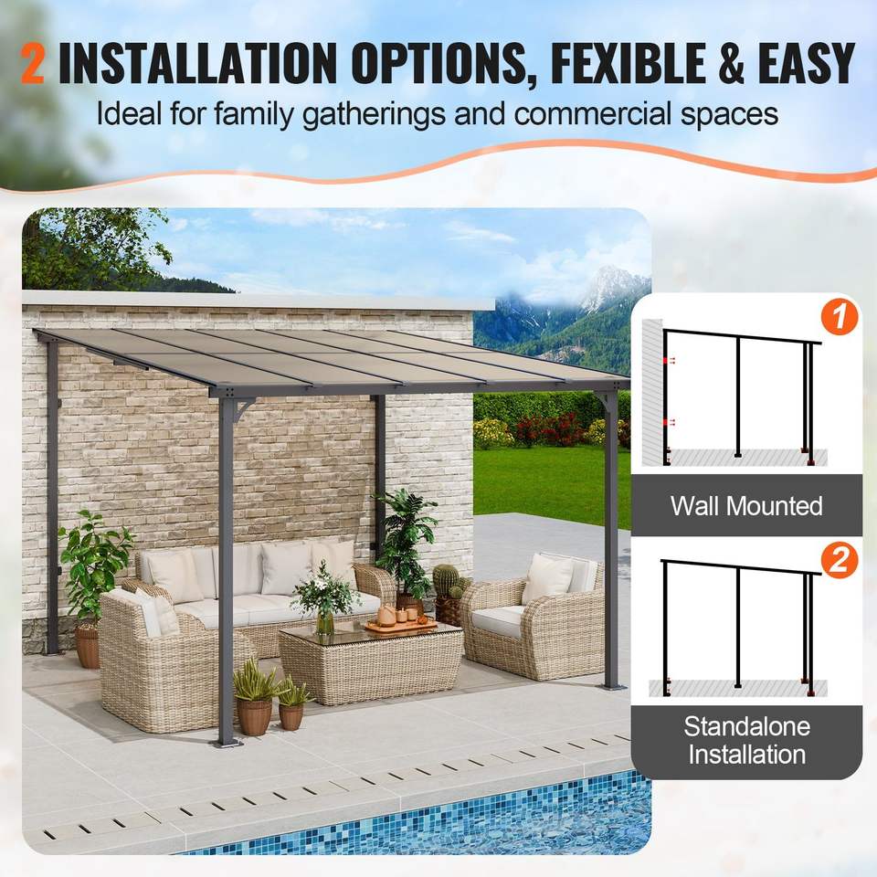 Pergola 10x10 con Tetto Rigido in Policarbonato Resistente ai Raggi UV, Montaggio a Parete o Autoportante, Struttura a Medaglione per Patio, Gazebo, Tettoia