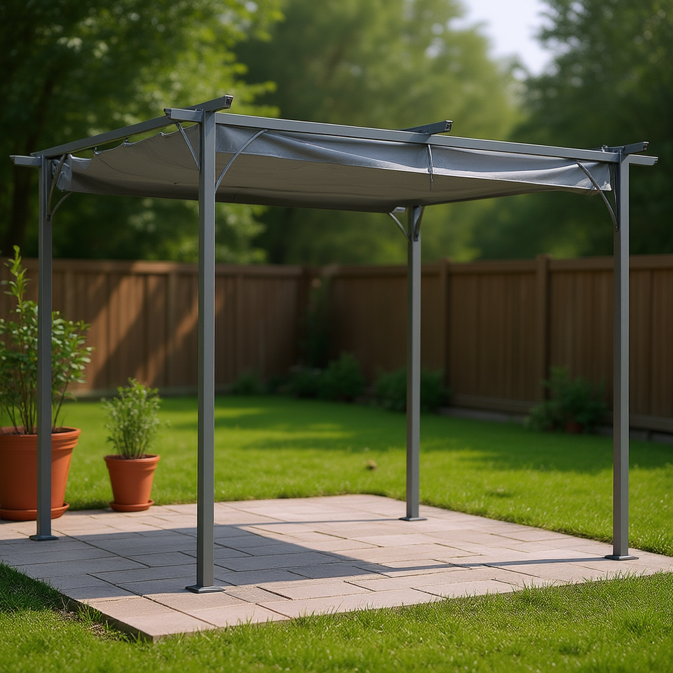Gazebo Retrattile in Acciaio Grigio 10 X 10, Pergola da Esterno con Protezione UV, Design Contemporaneo