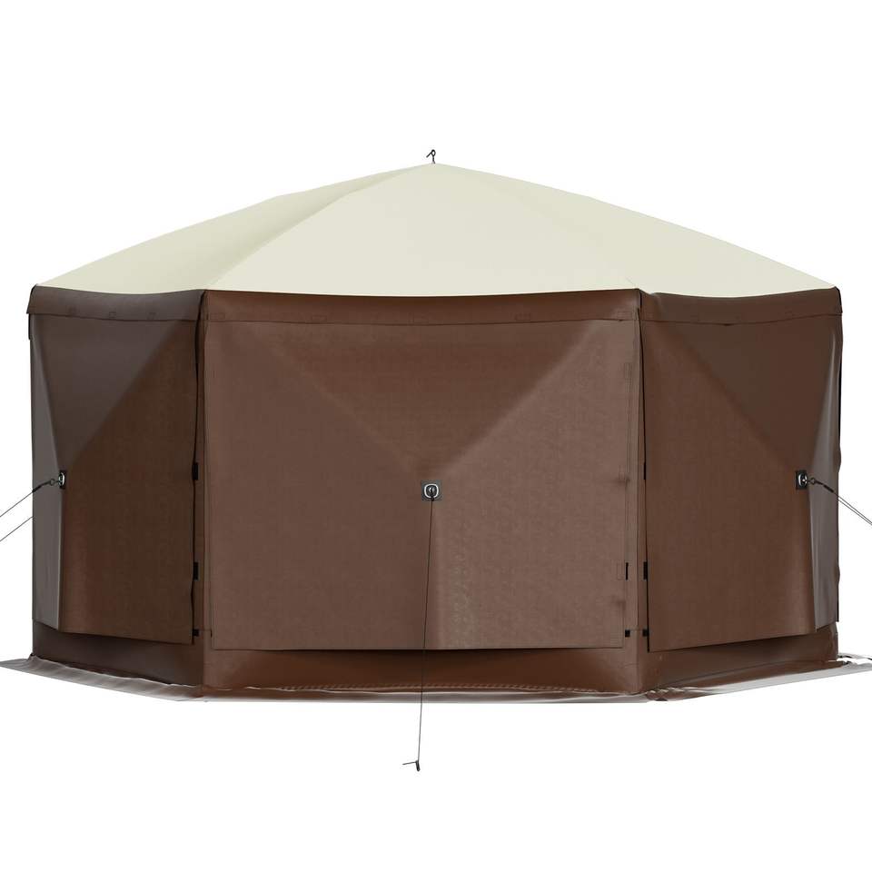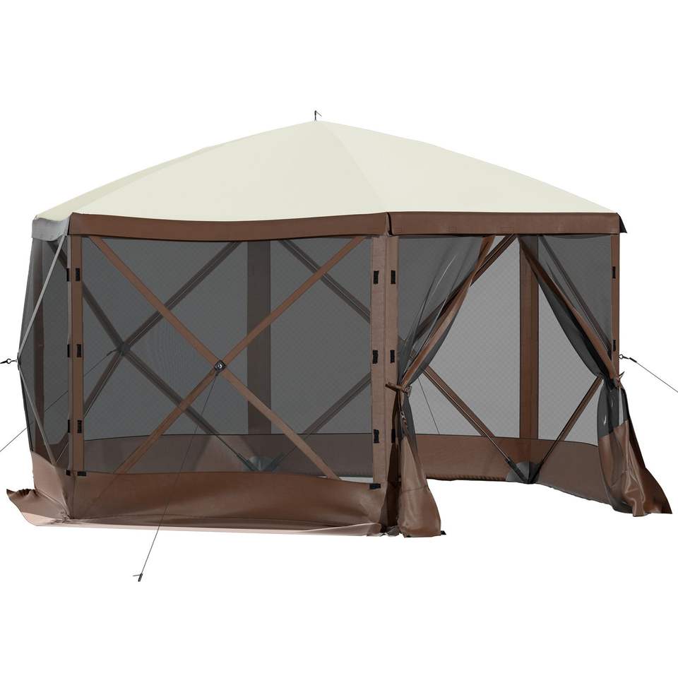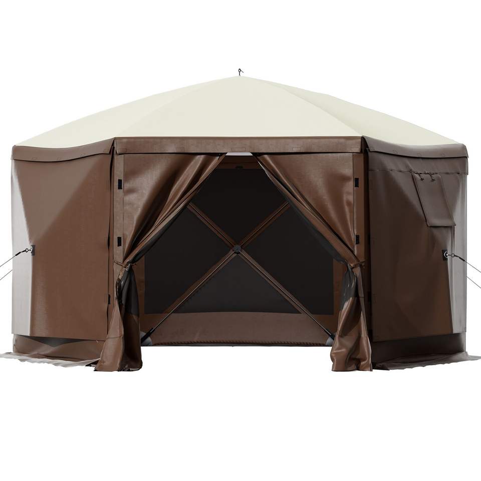 Gazebo a 6 Lati 10x10 Piedi con Zanzariera, Tenda Pop-Up da Campeggio Portatile con Borsa per il Trasporto e Picchetti da Terra, Finestre a Rete