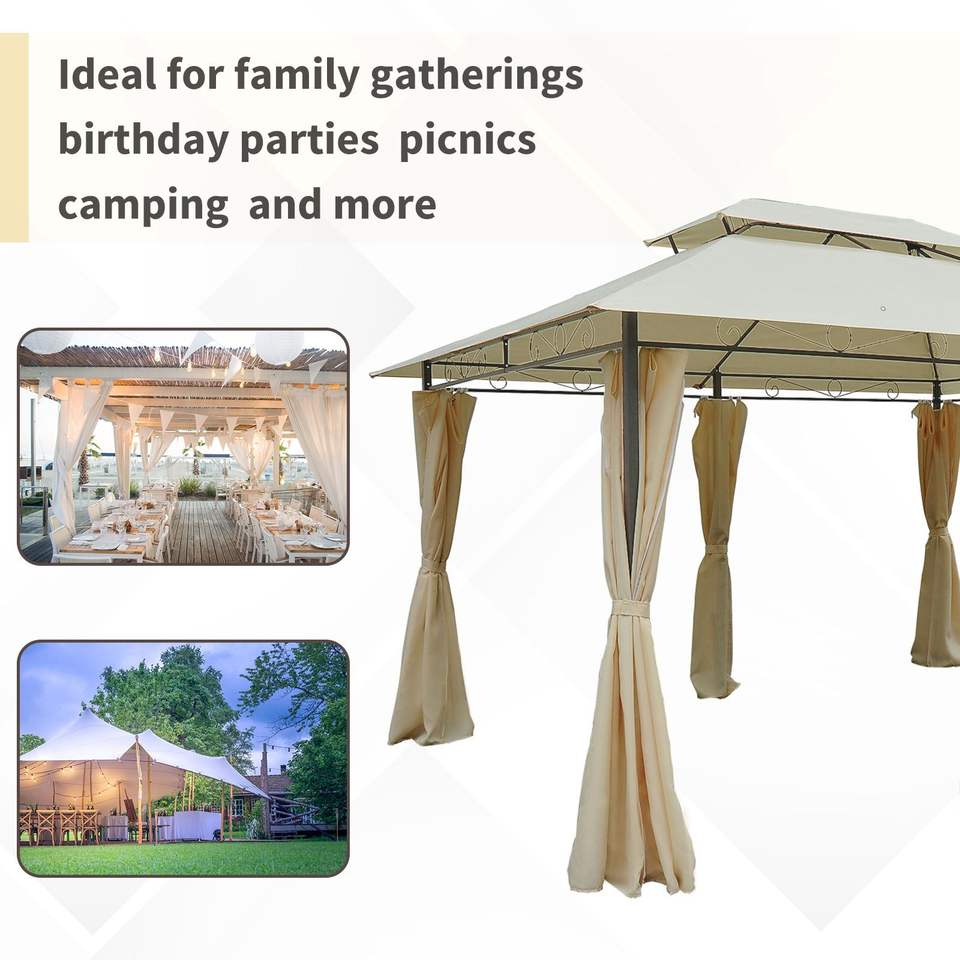 Gazebo da Giardino 10x13 con Tetto Ventilato, Struttura in Acciaio, Tenda da Esterno con Tende per Giardino, Prato, Cortile e Terrazza