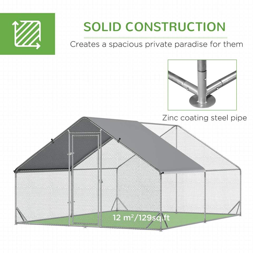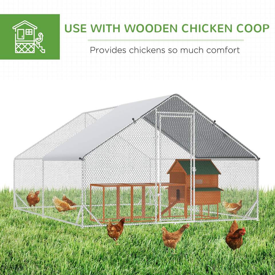 Pollaio da Esterno 10 X 13 X 6.5 con Porta Chiudibile a Chiave, Struttura in Metallo e Recinzione per Polli con Copertura