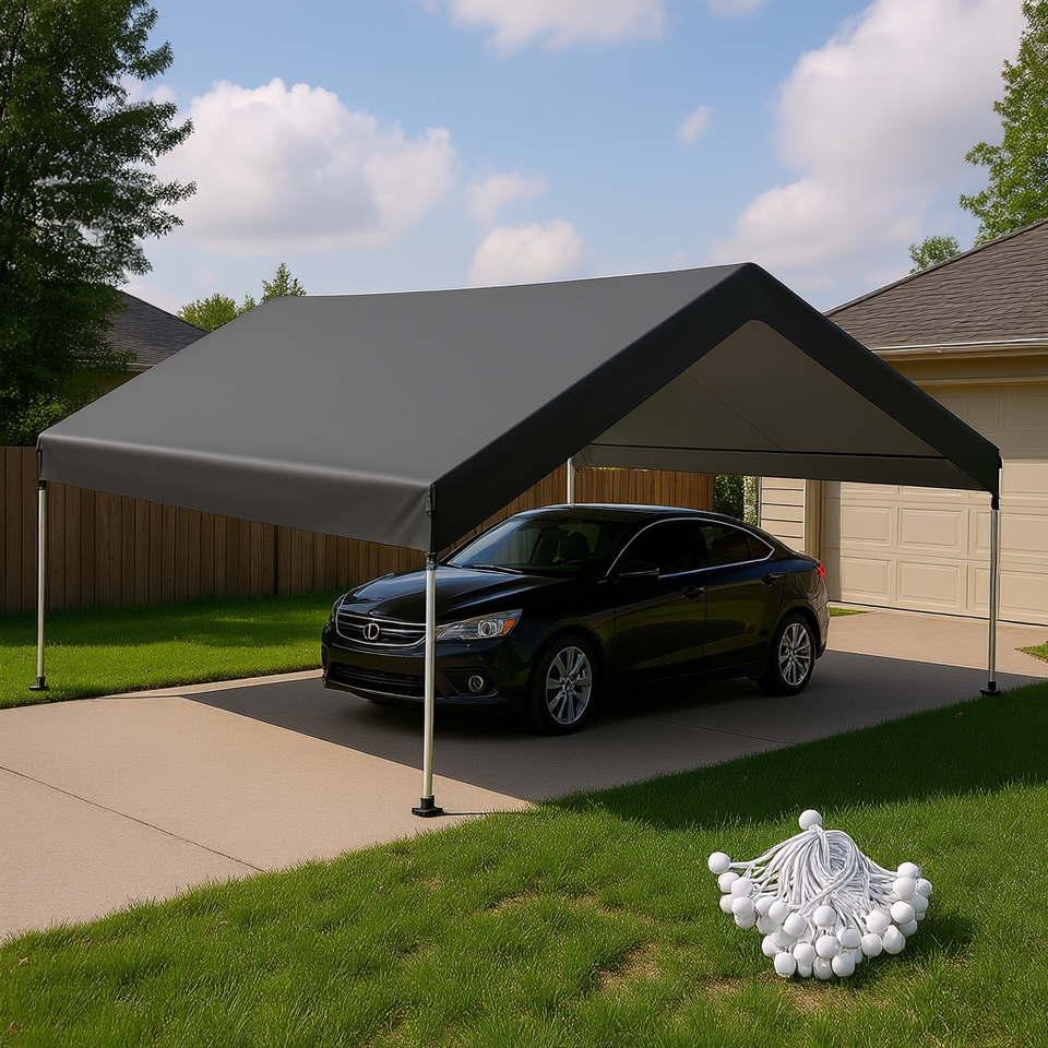 Carport Replacement Canopy 10 X 20ft Dark Gray UV Resistant Waterproof Tarpaulin Cover for Cars