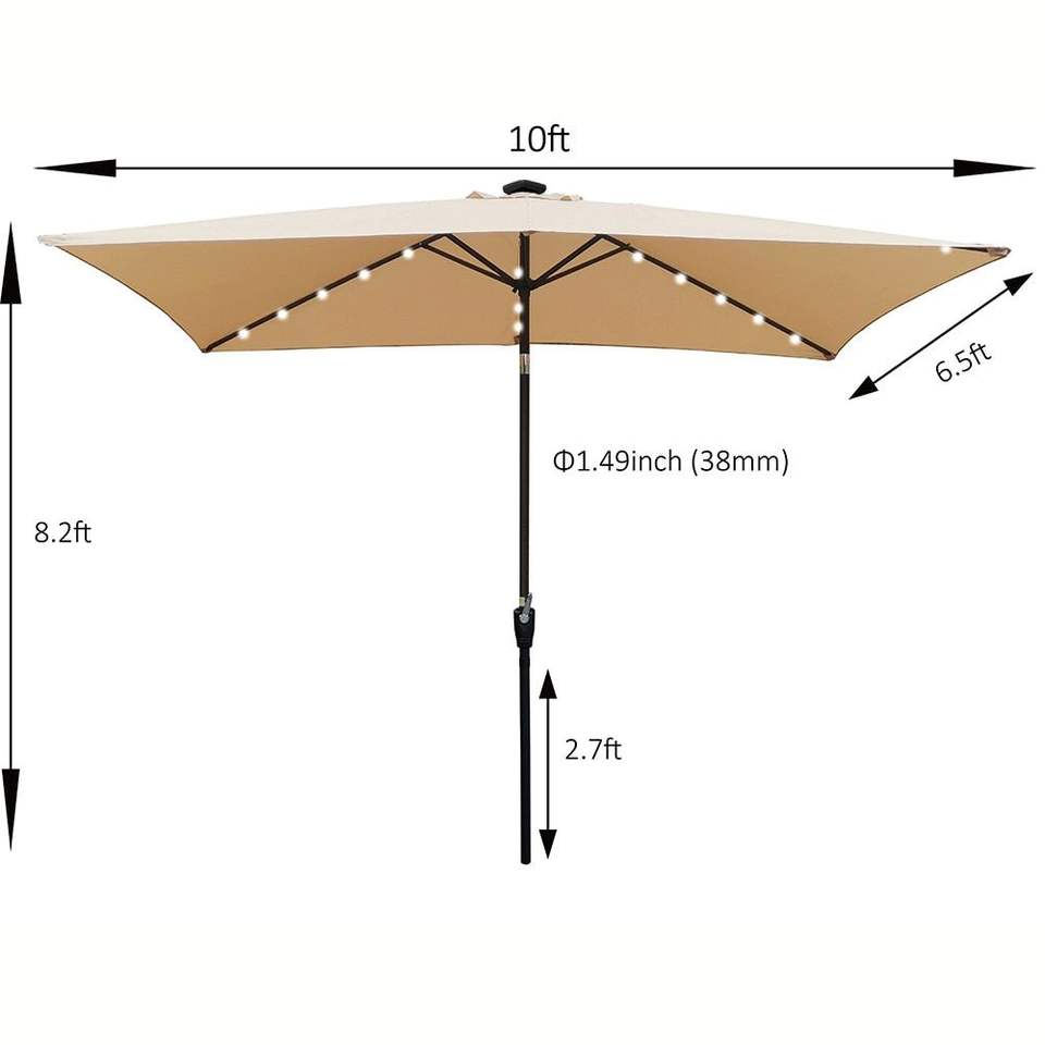 Ombrelloni da Esterno Rettangolari a LED 10 x 6,5 Piedi con Manovella e Pulsante Inclinabile per Giardino e Piscina