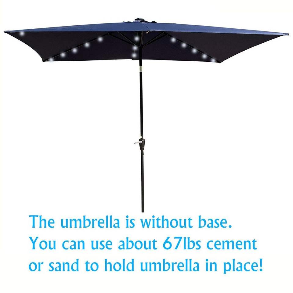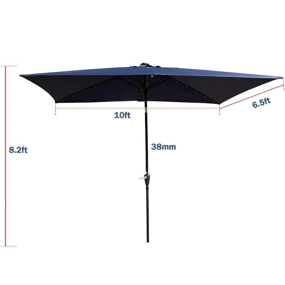 Ombrelloni da Esterno Rettangolari a LED 10 x 6,5 Piedi con Manovella e Pulsante Inclinabile per Giardino e Piscina