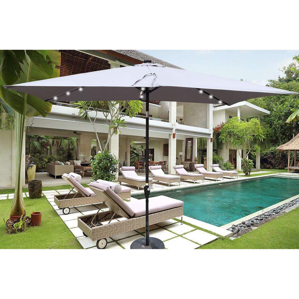 Ombrelloni da Esterno Rettangolari 10x6.5t con Luci LED Solari e Manovella a Pulsante per Giardino, Cortile e Piscina