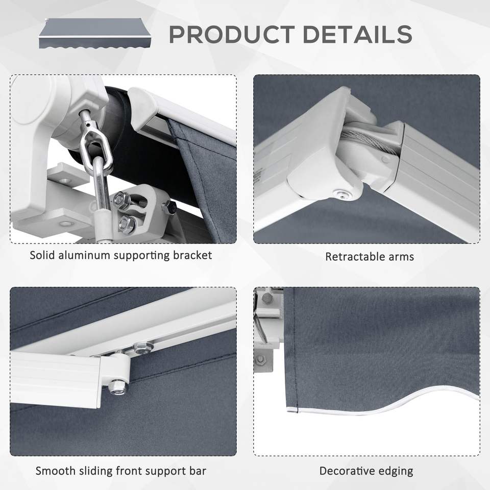 Tenda da Sole Retrattile Manuale 10 X 8 Grigio Scuro, Apertura Facile con Manovella, Protezione UV