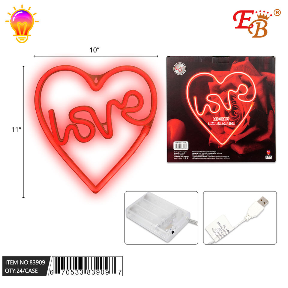 10\"X11\" Heart-Shaped LED Neon Light 24PCS/Carton Decorative Lighting