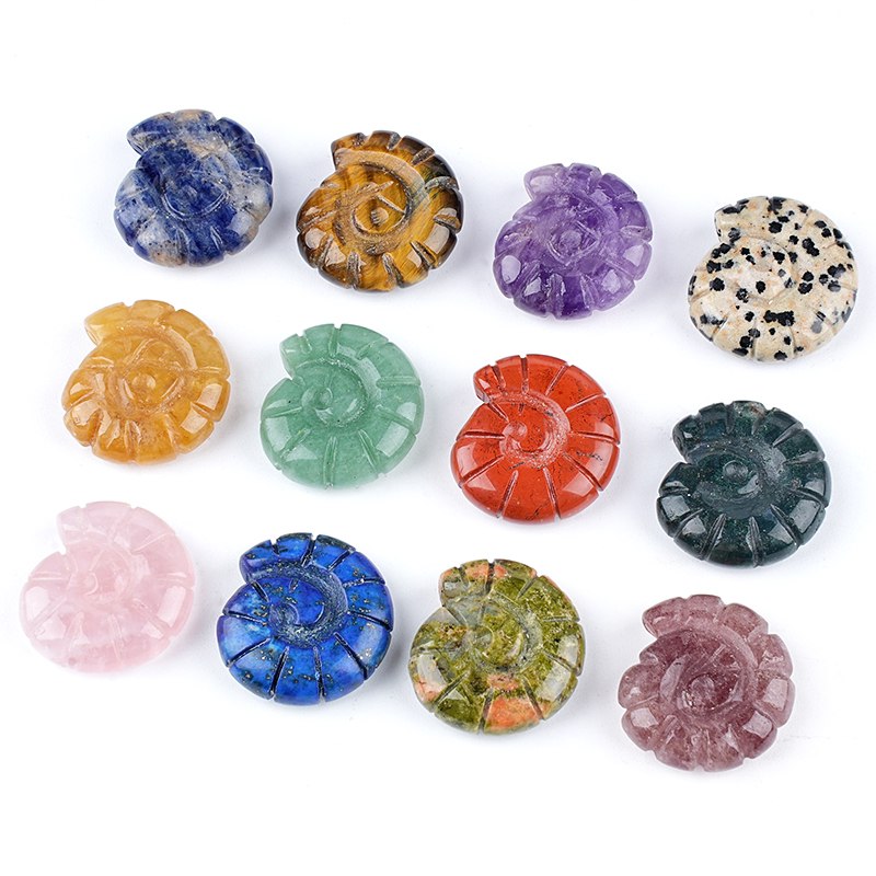 10+ Years Experience Spiritual Healing Crystal Carving Craft Tiger Eye Stone Amethyst Multi Material Small Conch for Souvenir