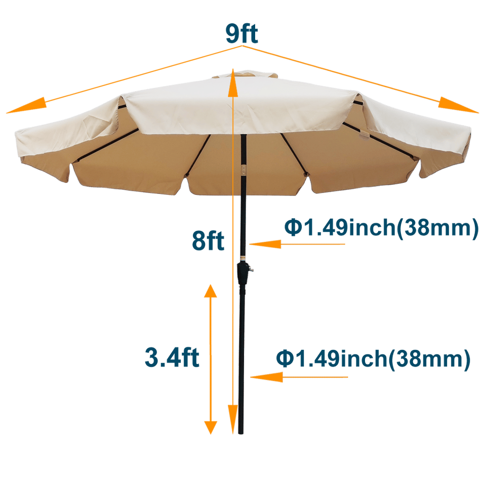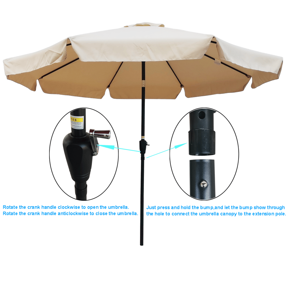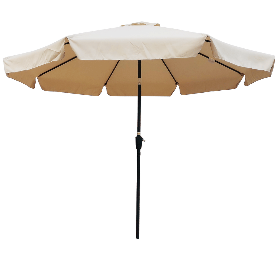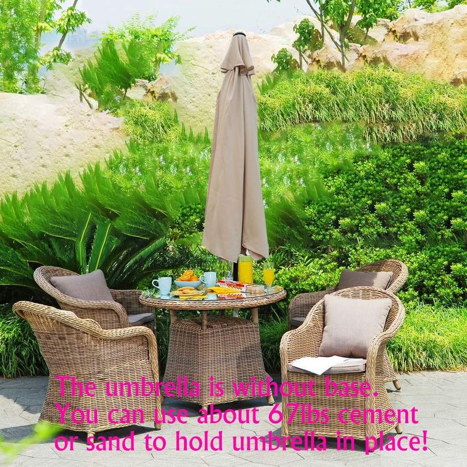 Ombrellone da Giardino Rotondo da 3 Metri con Manovella e Pulsante di Inclinazione, Base per Tavolo da Mercato, Ideale per Esterni, Giardino, Terrazza, Cortile, Piscina