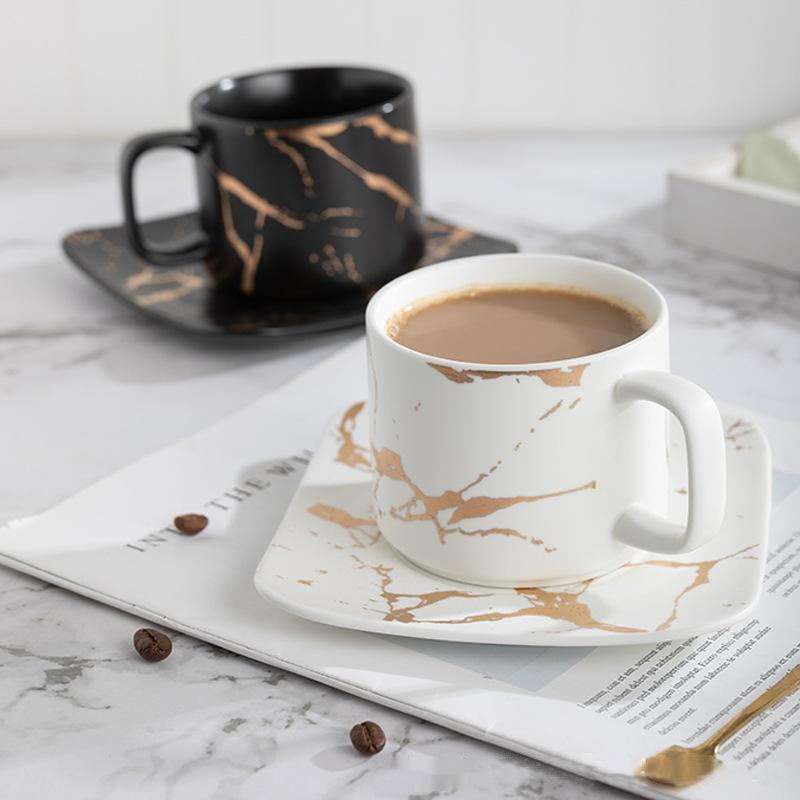 100/250ml Nordic Ins Luxury Marble Gold Cup and Saucer Coffee Cup Set Drinking Water Tea Coffee Ceramic Cup for Party