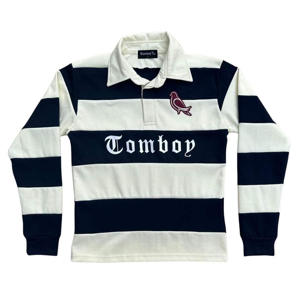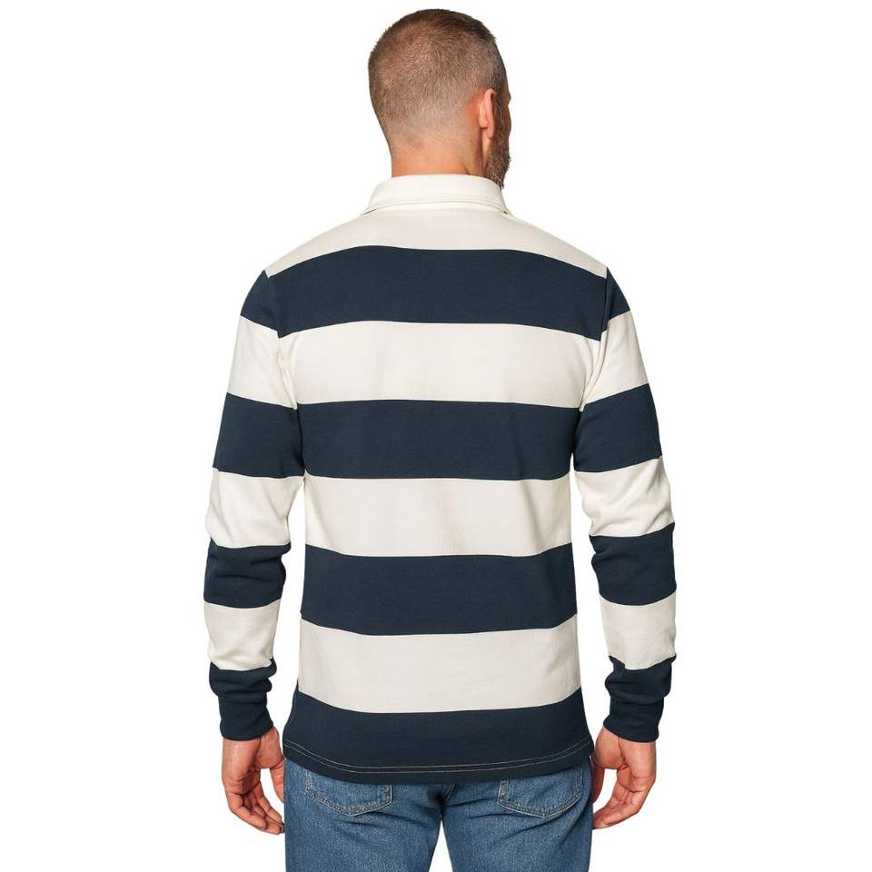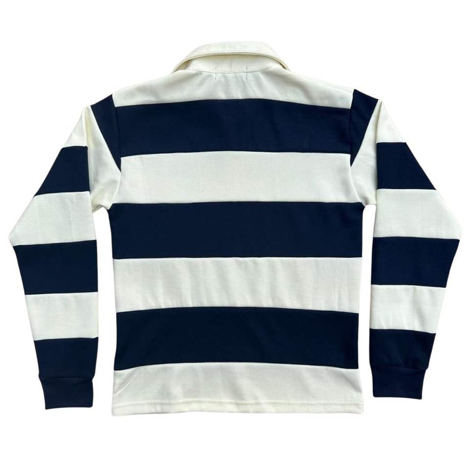 100% Cotton 300 GSM Double Jersey Rugby Polo Shirt Striped Design Navy Ivory Heavyweight Comfortable Long Sleeve Rugby Apparel