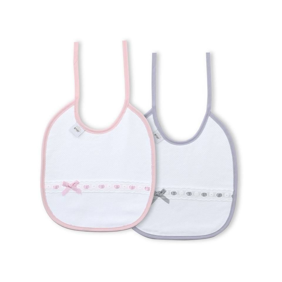 Set di 2 Bavaglini in Tessuto 100% Cotone, Grigio e Rosa, per Bambini da 0 a 12 Mesi