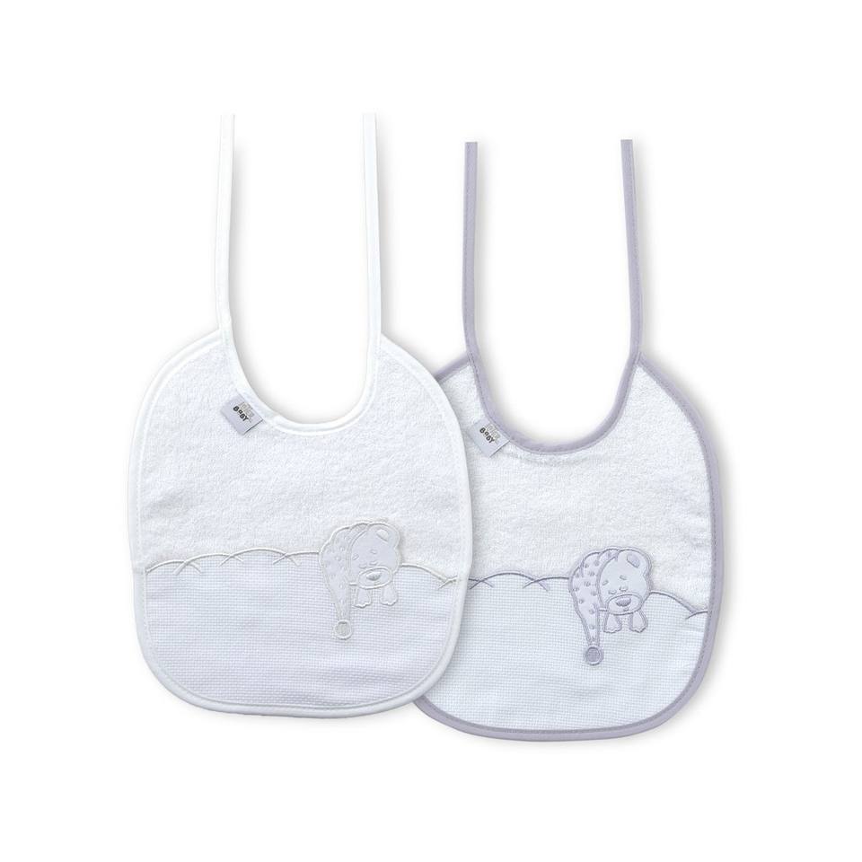 Set di 2 Bavaglini in Tessuto 100% Cotone Grigio e Bianco per Bambini da 0 a 12 Mesi