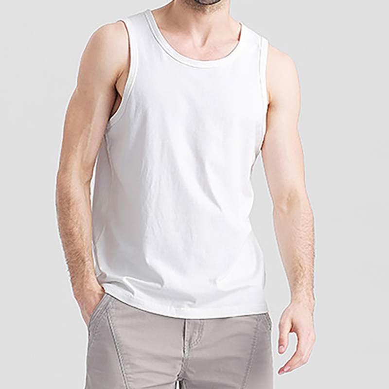 T-shirt da ginnastica bianca in cotone 100% senza maniche canottiera Casual tinta in tinta unita con Design bianco in bianco