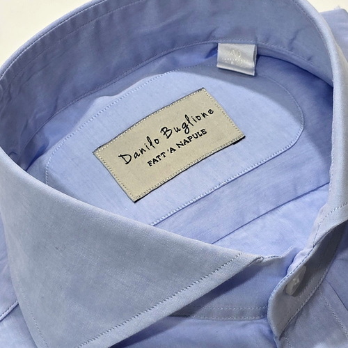 100% Cotton Neapolitan Collar Shirt for Men Custom-Made Artisanal Tuxedo & Casual Shirts Single Breasted Closure Blue Color