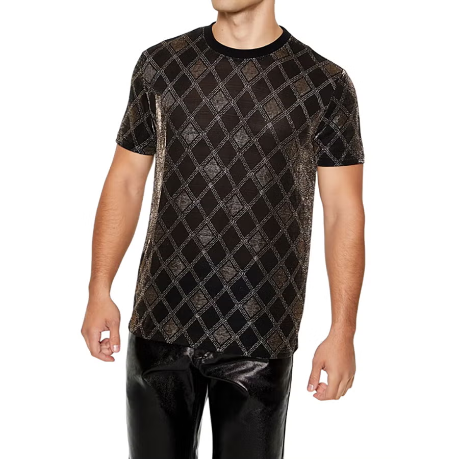 T-Shirt 100% Cotone Stampate con Motivo a Reticolo Metallico, Maglietta a Girocollo Antirughe, Traspirante, 180 Grammi per l'Estate
