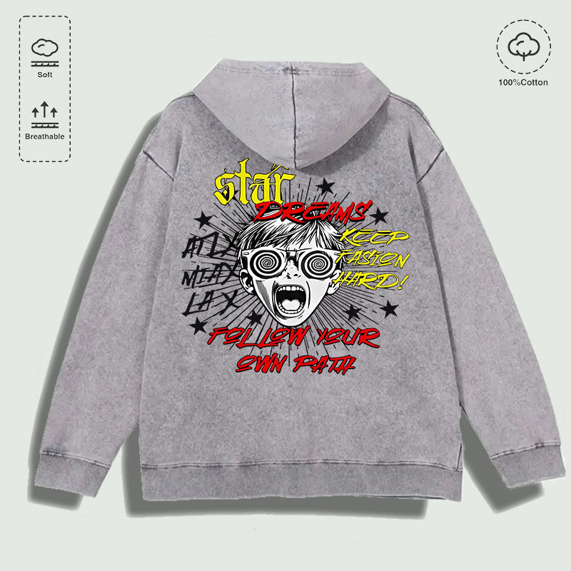 100% Cotton Washed "Star Dreams Follow Own Path" Graphic Hoodie, Multi - Colors