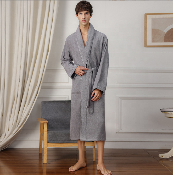 100% Cotton White Unisex Bathrobe Terry Cloth Long Thicken Nightgown for Men and Women