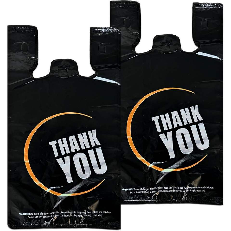 100 Sacchetti di Plastica Neri con Manico per T-Shirt, Ideali per Negozi al Dettaglio e Supermercati