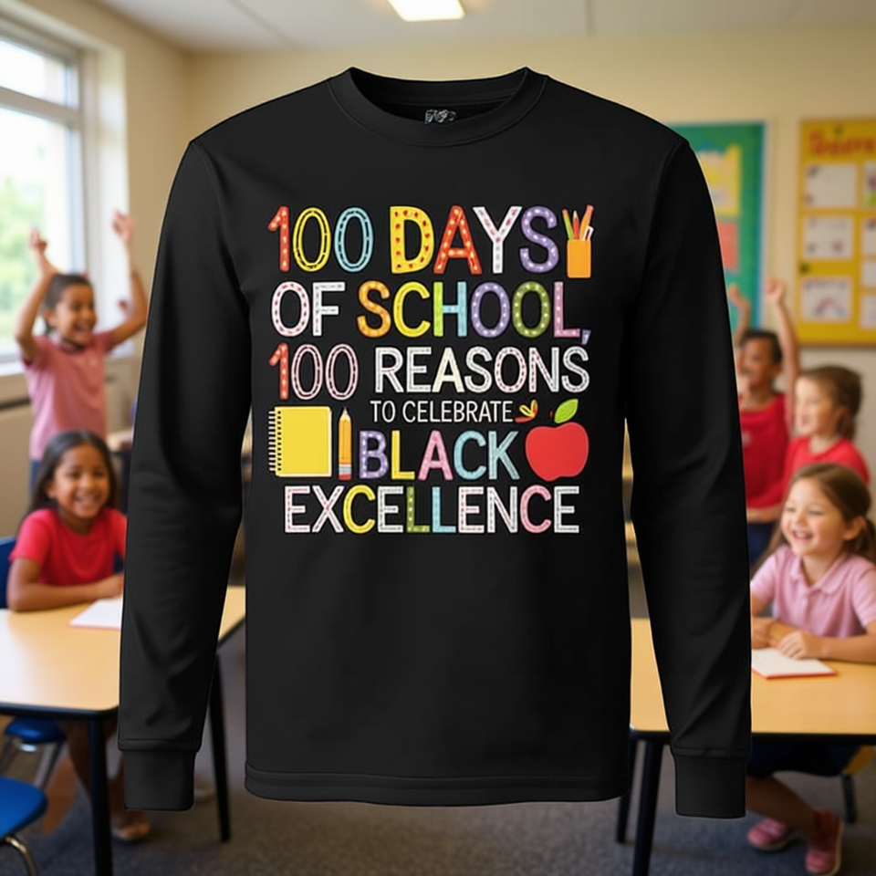 100 giorni di scuola, 100 motivi per celebrare l'eccellenza nera, maglietta a maniche lunghe