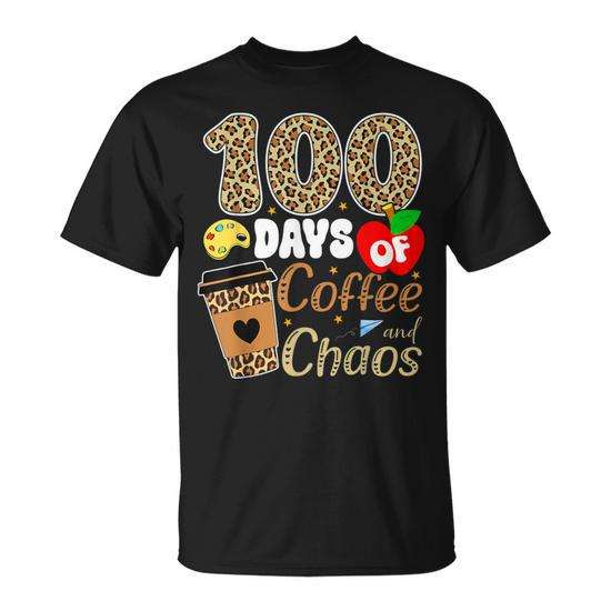 Maglietta per insegnanti amanti del caffè, 100 giorni di scuola, regalo per il 100° giorno di scuola per gli educatori