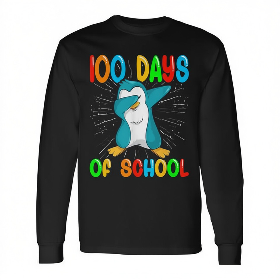 Maglietta a maniche lunghe con stampa 100 Days Of School Dabbing Penguin