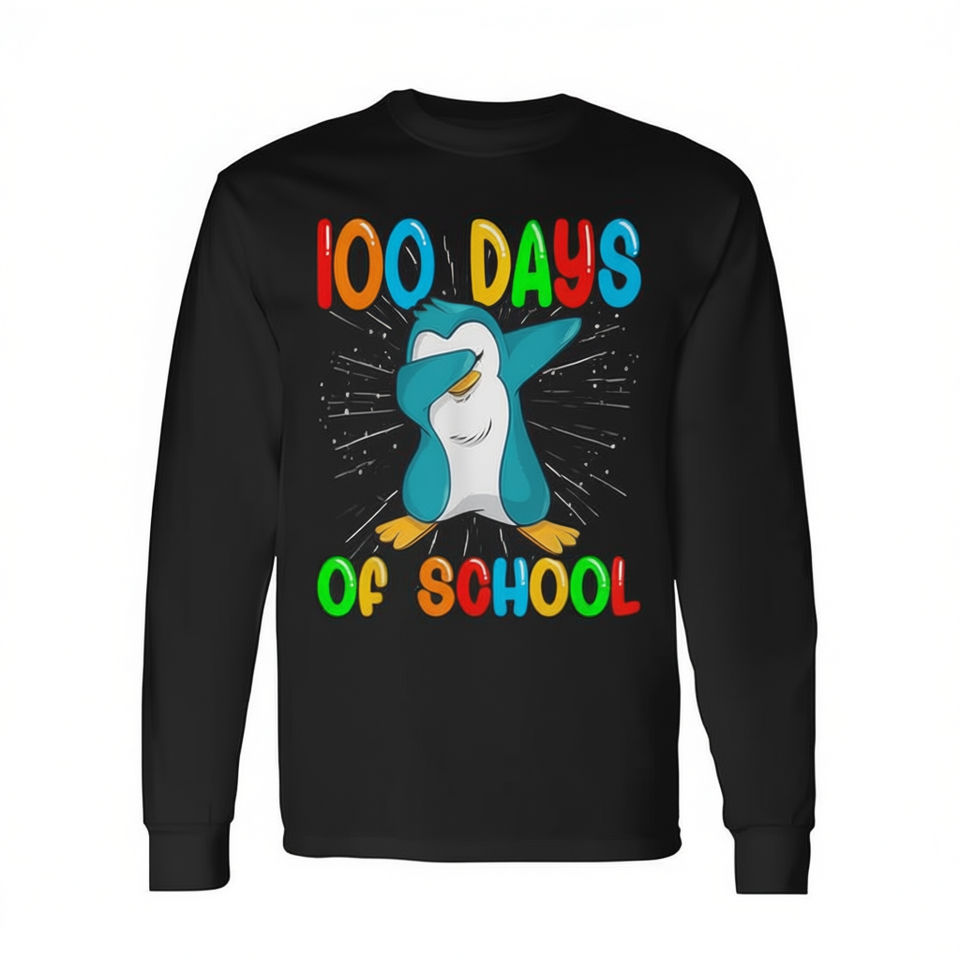 Maglietta a maniche lunghe con stampa 100 Days Of School Dabbing Penguin