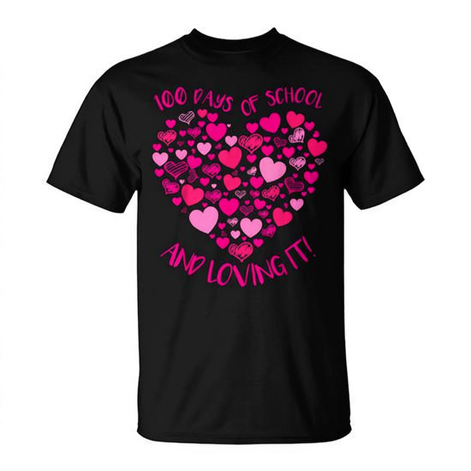 Maglietta per il 100° giorno di scuola con design a cuori carini per bambini, per la festa del 100° giorno di scuola